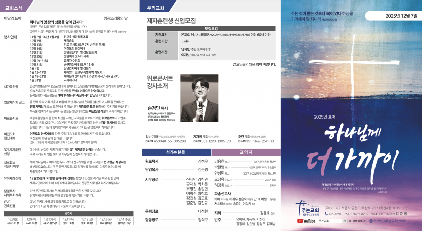 25-12-07 페이지 정보 작성자 주는교회 댓글 0건 조회 146회 작성일 25-12-05 14:40 목록 본문 이전글25-12-14 25.12.12 다음글25-11-30 25.11.28 댓글 0 댓글목록 등록된 댓글이 없습니다.