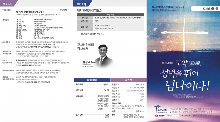 26-02-01 페이지 정보 작성자 주는교회 댓글 0건 조회 214회 작성일 26-01-30 12:54 목록 본문 이전글26-02-08 26.02.06 다음글26-01-25 26.01.24 댓글 0 댓글목록 등록된 댓글이 없습니다.