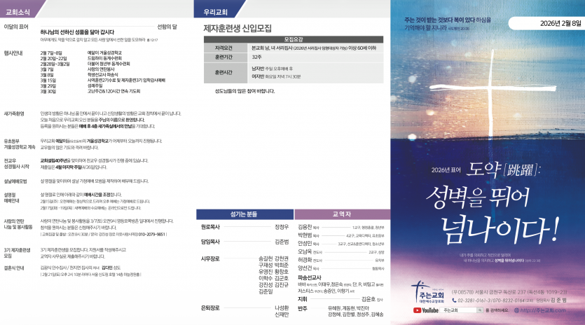 26-02-08 페이지 정보 작성자 주는교회 댓글 0건 조회 176회 작성일 26-02-06 15:07 목록 본문 이전글26-02-15 26.02.13 다음글26-02-01 26.01.30 댓글 0 댓글목록 등록된 댓글이 없습니다.