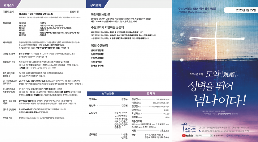 26-03-22 페이지 정보 작성자 주는교회 댓글 0건 조회 26회 작성일 26-03-20 18:48 목록 본문 다음글26-03-15 26.03.13 댓글 0 댓글목록 등록된 댓글이 없습니다.